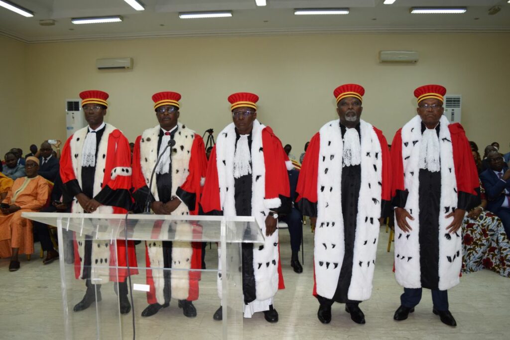 Also present were the President of the Court of Cassation and the President of the Council of State of the Republic of Côte d’Ivoire. This solemn sitting officially marked the assumption of office of the newly appointed Judges.