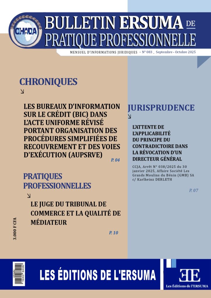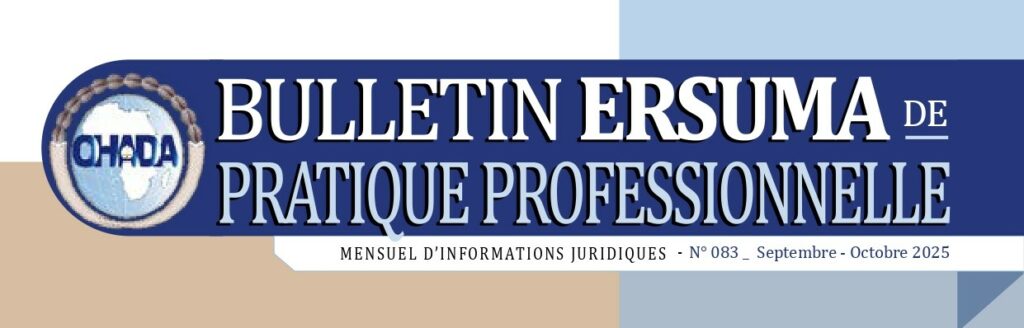 La ERSUMA, escuela de Derecho de los negocios de la Organización para la Armonización en África del Derecho de los Negocios (OHADA) se complace en anunciarles la publicación del número 83 del Boletín ERSUMA de Práctica Profesional (BEPP).